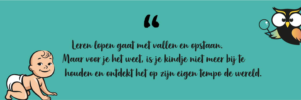 Net als leren lopen. Ook dat gaat natuurlijk niet vanzelf. Maar voor je het weet, is je kindje niet meer bij te houden en ontdekt het op zijn eigen tempo de wereld.