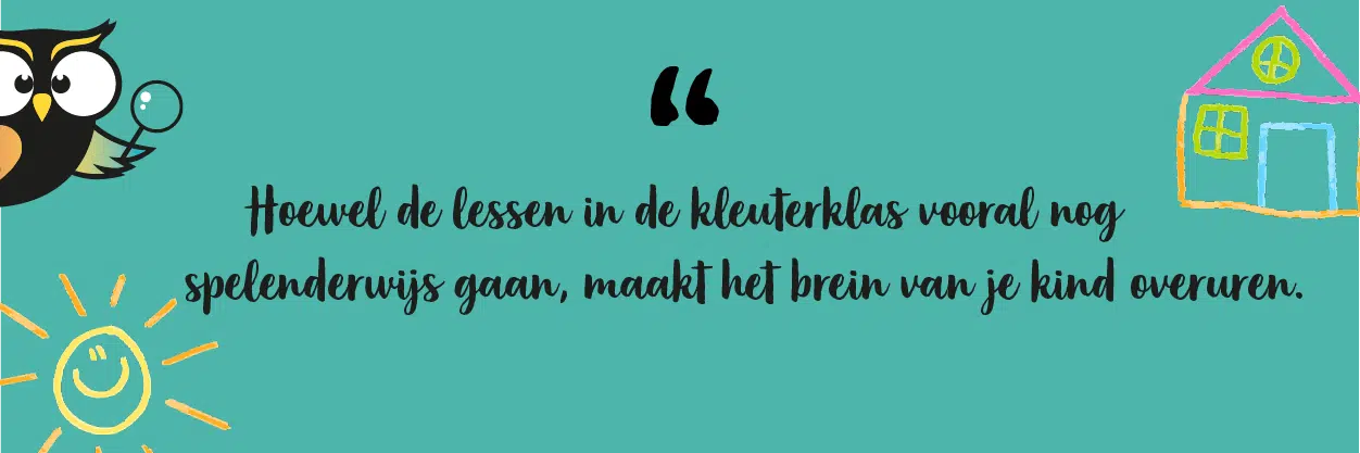 Hoewel de lessen in de kleuterklas vooral nog spelenderwijs gaan, maakt het brein van je kind overuren. Door alle ervaringen, maar ook door nieuwe woorden die het leert.