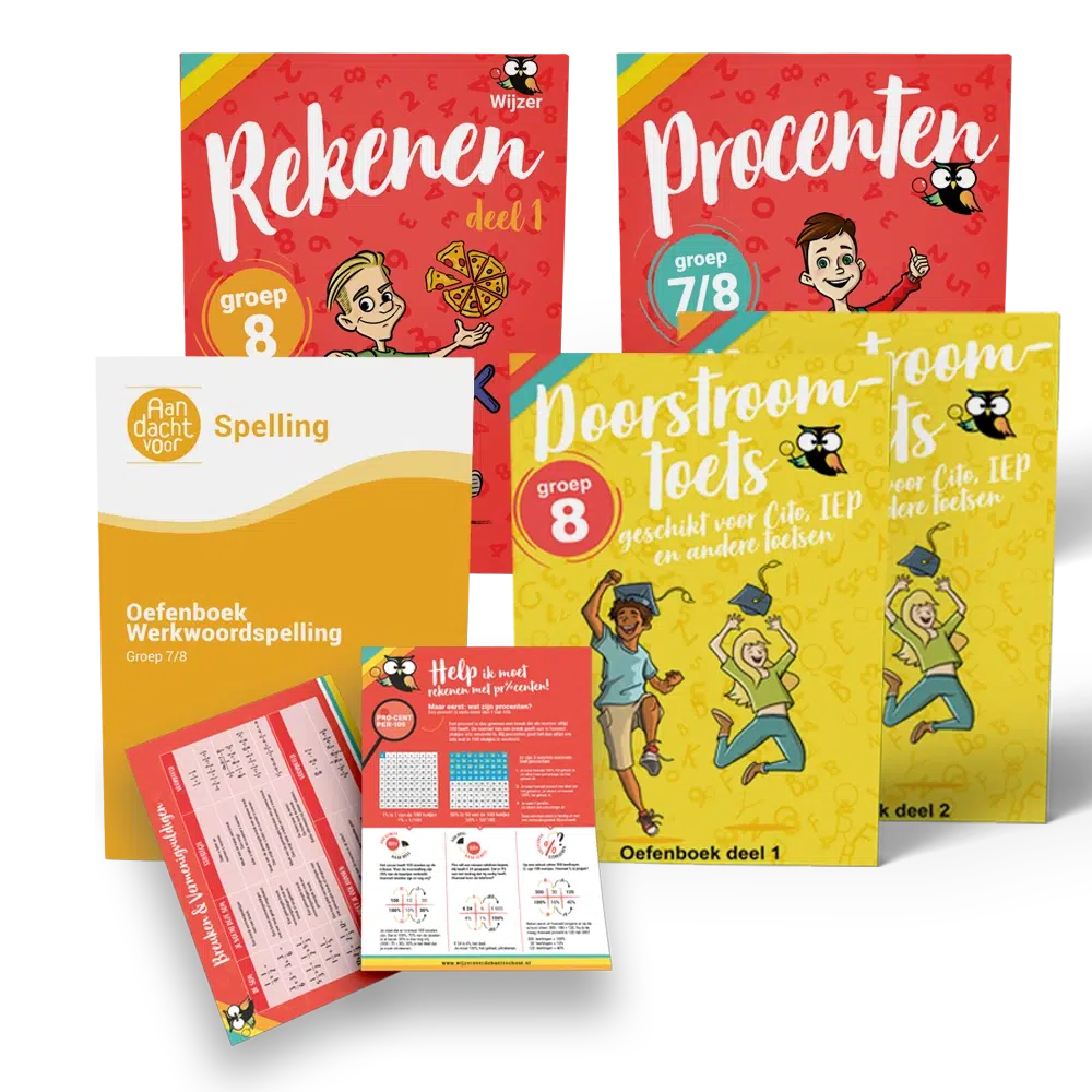 Kijk bij andere aanbieders goed naar wat je voor een bepaalde prijs krijgt en of je wel een echt boek krijgt toegestuurd. Bij Wijzer over de Basisschool krijg je echte (gedrukte) oefenboeken waarmee je vaak tot 4 x meer kunt oefenen dan bij andere aanbieders. Onze oefenboeken zijn de meest uitgebreide oefenboeken van Nederland.
