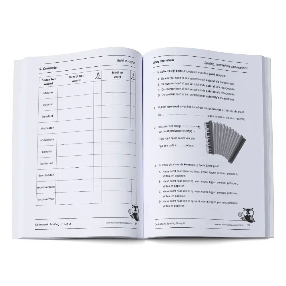 - Alle regels en spellingcategorieën van de Toetsen Spelling en Doorstroomtoets Groep 8 komen voor in het oefenboek.