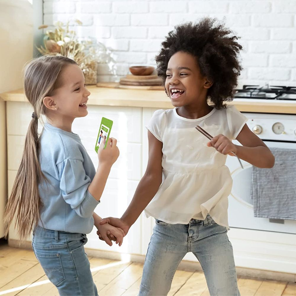 Heel leuk spel! Op verschillende manieren te gebruiken, in de auto, in huis, buiten. Mijn dochters (9 en 11 jaar) zijn erg enthousiast.