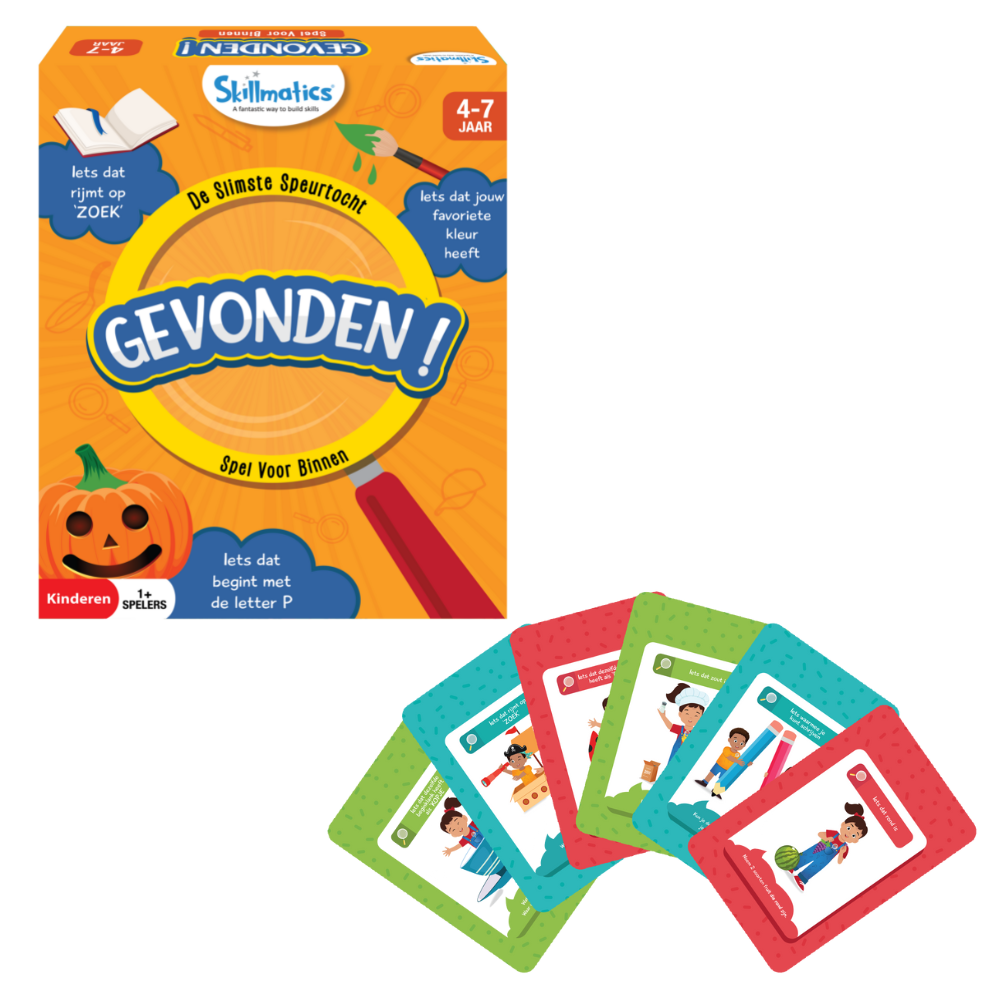 Kun jij iets vinden… met een patroon? Dat kleiner is dan je handpalm? Roep: ‘GEVONDEN’ zodra je het voorwerp in handen hebt. Speel alleen of met vrienden en probeer als eerste 7 kaarten te winnen.