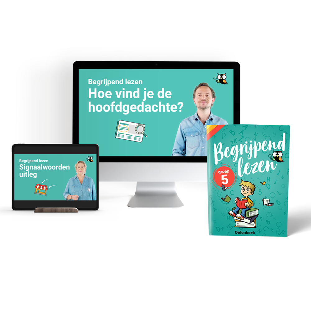 - Weet je kind precies hoe hij toetsopgaven (Cito/IEP) moet oplossen dankzij de vele teksten in het oefenboek, het Stappenplan Cito-toets begrijpend lezen en de voorbeelden in de videolessen en LeesWijzers