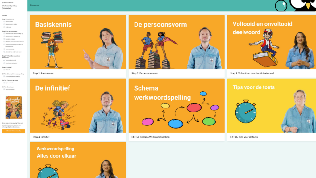• Stap-voor-stap uitleg van onderwijsexperts over de complete werkwoordspelling van de basisschool.